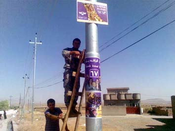 الجاري، بوضع لافتات وملصقات القائمة في منطقتي كويسنجق وأرموتا في محافظة