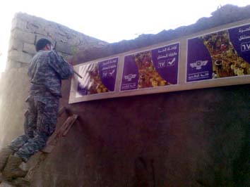وتجسد هذه اللافتات والملصقات مفردات البرنامج الانتخابي