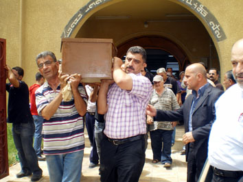 التي اقيمت على روحه الطاهره ومشاركة اهله ورفاقه في كنيسة مكريم العذراء
