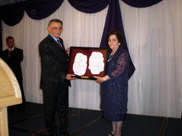 شهادة تقديرية لجهودنا تجاه شعبنا وذلك في حفل الاستقبال في صالة المدينة