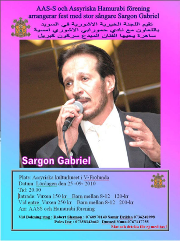 اعلان عن امسية ساهرة للفنان سركون كبريل في السويد