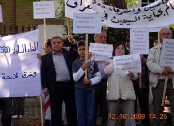 12-3-2008 م امام مقر السفارة العراقية احتجاجا على الغاء المادة "50" من
