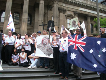مؤازريها في المظاهرة المشتركة التي شهدها مركز مدينة ملبورن و شارك فيها
