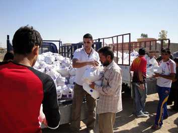 مكتبها في فرع كالح بأرسال قافلة اغاثة تشمل مواد غذائية متنوعة للمنكوبين