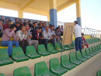 المحاضرة الواحدة 45 دقيقة وذلك على مدرجات ملعب المديرية العامة للنشاط