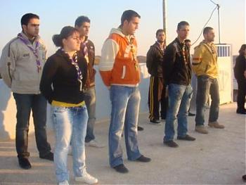 ومن ثم تجمع واصطف الكشافين والمرشدات وتم خفض العلم وبعدها رددوا الوعد