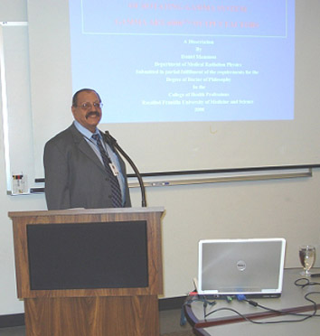 لمناقشة اطروحته الخاصة بفيزياء الطب الإشعاعي لمعالجة الأمراض