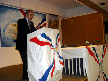 الاستاذ ميخائيل ممو رئيس نادي بابل الاشوري في يونشوبينك ليلقي كلمة