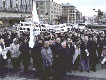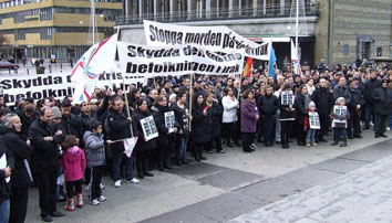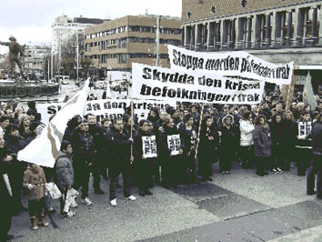 ومن ثم تحرك ألجمع ألكبير في مسيرة راجلة بحماية ألأمن ألسويدي بأتجاه