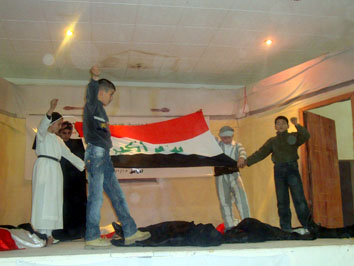 وكانت الحقيبة رمز لاغتيال العلم وتبين المسرحية بان تكاتف ومحبة العراقيين