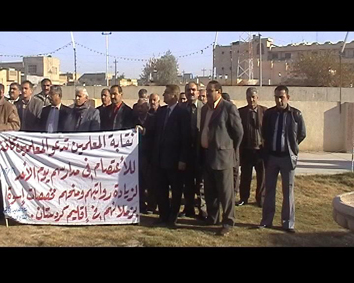 زوعا - بخديدا اعتصم المعلمين في بخديدا مركز قضاء الحمدانية يوم الأحد 16-12-2007 أمام مبنى مديرية تربية الحمدانية مطالبين الحكومة بمساواة رواتبهم أسوة بأقرانهم في افليم كردستان حيث إن المعلمين في إقليم كردستان يستلمون رواتب ومستحقات مالية اعلي من اقرأنهم في بقية محافظات العراق . وكانت نقابة المعلمين في العراق قد دعت كافة المعلمين في العراق إلى الاعتصام يوم الأحد من اجل الضغط على الحكومة لغرض مساواة رواتبهم مع نظرائهم في اقليم كردستان . وقد رفع المعتصمون لافتات كتب عليها نحن المعلمون نطالب الحكومة العراقية برفع رواتبنا أسوة بزملائهم في اقليم كردستان . هذا وكانت نقابة المعلمين العراقية قد طلبت من كافة المعلمين الاعتصام ليوم واحد وإعطاء مهلة للحكومة للنظر في مطالبهم . حتى يوم 1-1-2008 ، والا فسوف تدعو النقابة إلى إضراب عام وشامل لكافة معلمي العراق اعتبارا من يوم 2-1-2008 والى أن يتم الاستجابة لمطالبهم