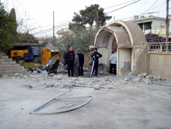 الأضرار الجسيمة التي لحقت بكنيسة البشارة برفقة كاهن الكنيسة الأب بشار