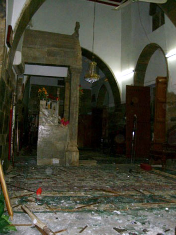 بالكنيسة جراء تفجير سيارتين ملغومتين بقربها .