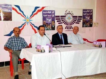الآشورية عضو مجلس النواب العراقي رئيس قائمة الرافدين، يرافقه الدكتور