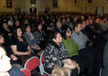 المدينة , وجمهور كبير من أبناء شعبنا في السويد غصت قاعة البيت بهم ..