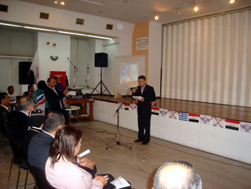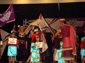 وبعدها عرض فلم وثائقي مصور على شاشة كبيرة يستعرض حضارة وادي الرافدين