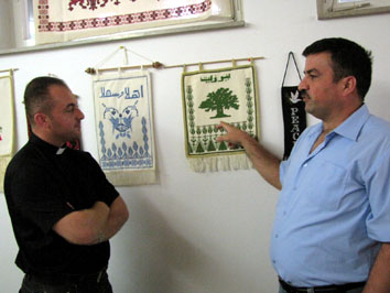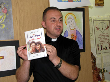 سيزار صليوا والقس ايهاب نافع بافتتاح المعرض من بعد تاديه الصلاة في