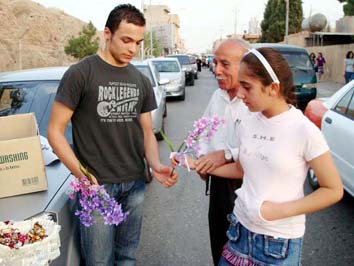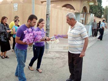 أبدوا تفاعلا جميلا لتلقي هذه الباقات البنفسجية وقابلوا الجموع بالشكر