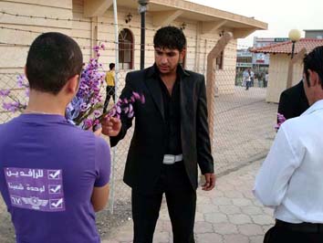 تمثلت بتوزيع باقات من الورود تحمل اسم ورقم قائمة الرافدين 67 على أبناء