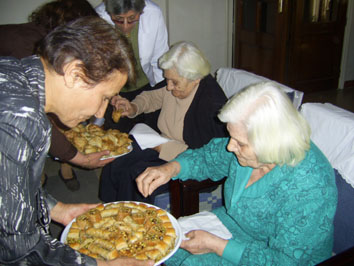 اثناء الزيارة بتقديم الحلويات الى نزيلات ونزلاء الدار، عربون محبة بهذه