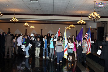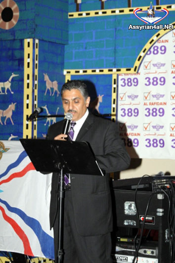 الحفل بمسيرة مصغرة تقدمها العلم العراقي وعلم الامة الكلدانية الاسريانية