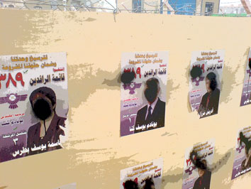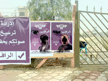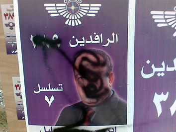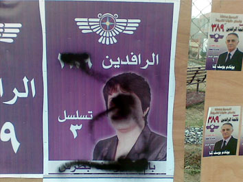 تشوية ملصقات قائمة الرافدين في عنكاوا