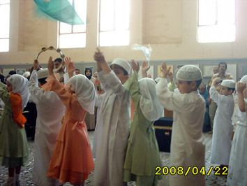 البريئة وحركاتها الفنية الجميلة بعد ان تكون حناجرهم صادحة بأناشيد تدربوا