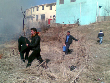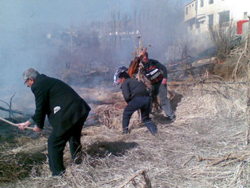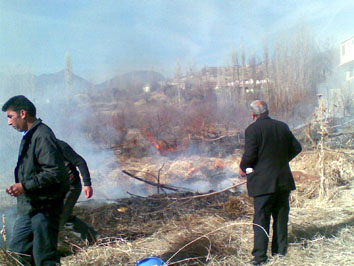 العديد من اهالي القرية والقرى المجاورة باخماد الحريق ولم يعرف المسبب لحد