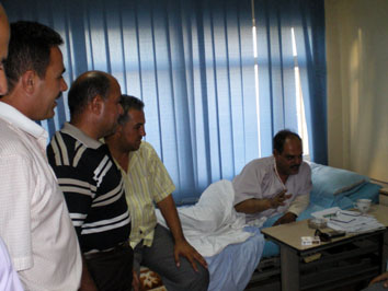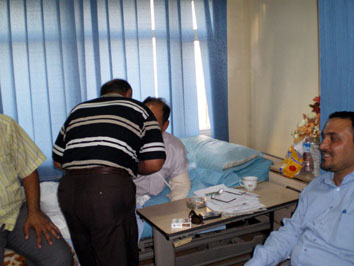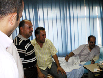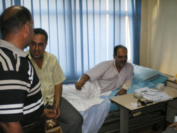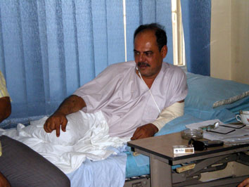 مؤيد اللامي نقيب الصحفيين العراقيين في مستشفى الشيخ زايد بعد ان تعرض الى