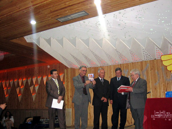 درع تذكاري بأسم الأسرة الجامعية ، ونسخة من فلم ( آخر الآشوريين ) للمخرج