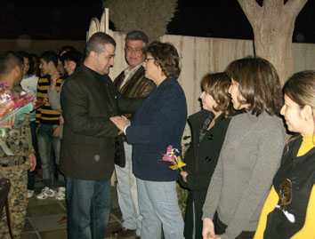حفاوة المستقبلين الذين تقدمهم السيدان نزار حنا وإدريس ميرزا عضوا قيادة