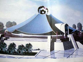 وتابع: أن "النصب سيكون على شكل خيمة تعتليها كرة قدم كبيرة