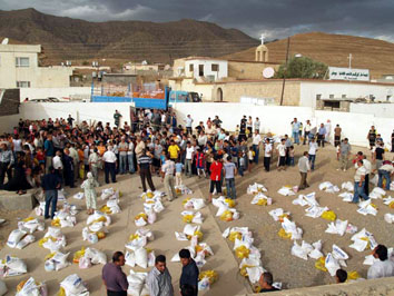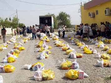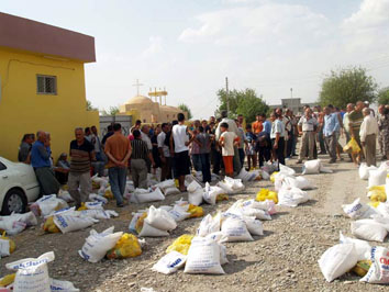 الاشورية بتوزيع المواد الغذائية لاهالي قريتي ديرابون وبخلوجة وذلك بتاريخ