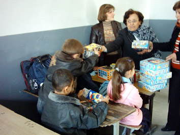 بتوزيع الهدايا لطلاب مدرسة بهرا وانستانس الكرملي السريانية في كركوك. وقد