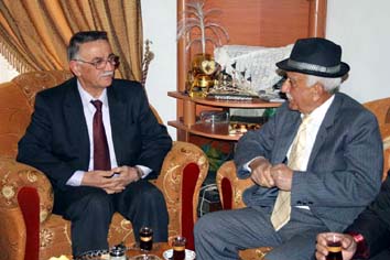 الوفد الزائر في داره لشرب فنجان قهوة.
