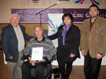 وهو على كرسي المعوقين وتصويته لقائمة الرافدين 389 .