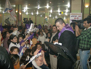 الانتخابي لقائمة الرافدين 504، ترجل بعدها من المنبر ليلقي التحية على