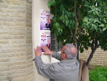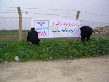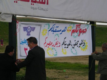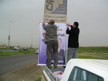 خلال الحملة الانتخابية لقائمة الرافدين من خلال تعليق اللافتات الخاصة