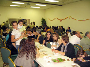 القداس تجمع الحضور في قاعة الكنيسة الخاصة بالمناسبات ليتناولوا الأطعمة