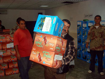 مساعدات (احتياجات غذائية (للنازحين من الموصل بسبب الاحداث الاخيرة التي