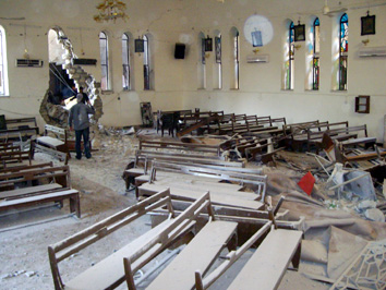 الأضرار الجسيمة التي تعرضت لها الكنيسة بسبب حادث الاستهداف، تجدر