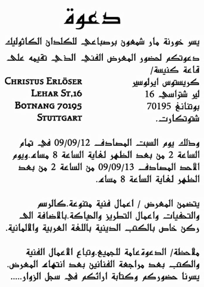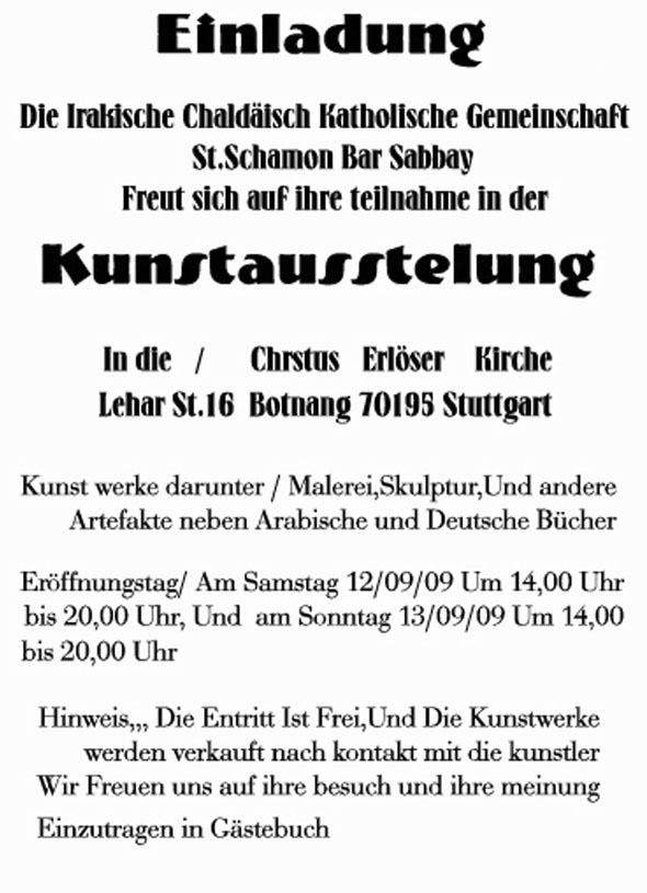 اعلان من خورنة مار شمعون برصباعي في المانيا